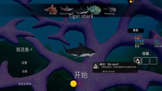 技能:拉帮结派(召唤周边的鱼类,成为你的同伴);毁灭(吞下比往常大50%的肉块)