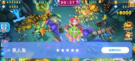由波克城市自主研发的波克捕鱼游戏中就有神秘莫测的美人鱼BOSS,其拥有一头火热的红发,红蓝相间的尾巴,身着像是晶莹海水般的露脐装,造型又萌又漂亮。美人鱼会出现在海盗宝藏、食人鱼谷、时光龙穴、机械迷城等场景模式中,是一个随机倍率BOSS。在击杀美人鱼BOSS后,神秘大转轮就会出现,300倍~9999倍随机奖励便会从天而降。美人鱼BOSS能够带来如此令人心动的奖励,自然是玩家激烈争夺的对象。然而很多玩家在捕获美人鱼的过程中,子弹耗尽也没有收获,那究竟该如何捕获美人鱼BOSS呢?