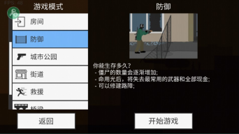 1、进入《平面僵尸防御》最新版本游戏后,点击“开始游戏”,会出现好几种关卡供你挑选。小编推荐防御模式,此模式相对简单。