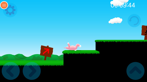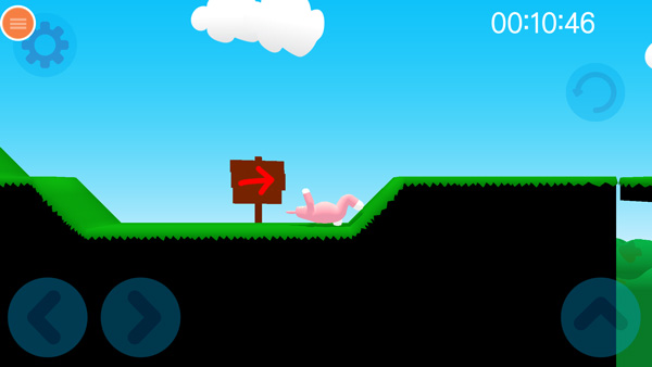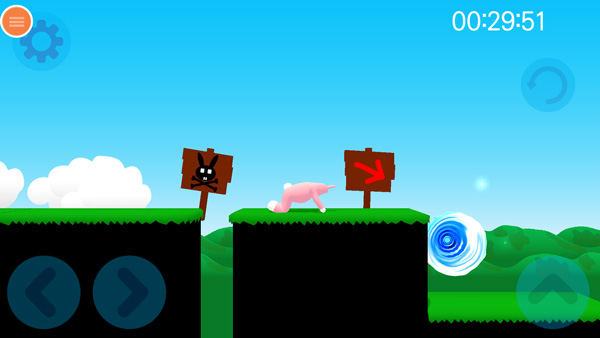 3、正式进入关卡挑战,先来熟悉一下操作流畅,左下方的左右按钮可以控制兔子人移动,右侧则是跳跃按钮