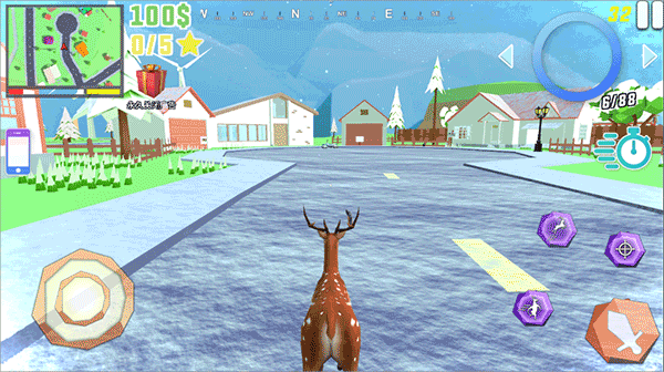 同时,玩家在扮演一只鹿的情况下,在城市中出现势必引起人们的好奇,玩家可以试着对路人进行挑战,看看他们的反应,也可以前往远处地点好好欣赏这座城市的无限魅力,这么好的一款开放世界游戏,大家喜欢就快来下载游玩吧!