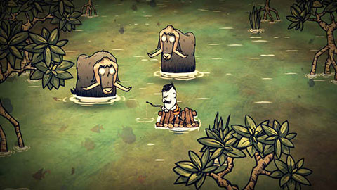 小心鳄犬:每隔3-13天就会有鳄犬来袭,注意听类似橡皮鸭子的预警声音,角色也会通过对话告知玩家狗来了。准备好武器和装备,在岸上解决它们。