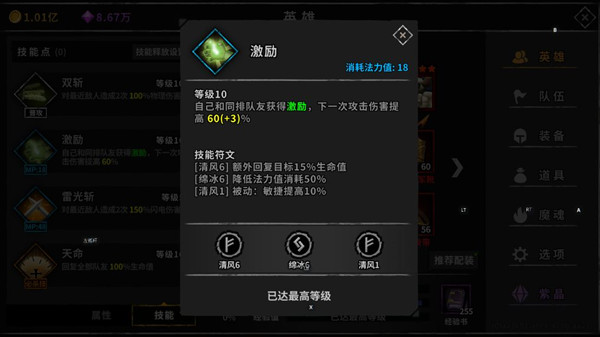 刘备的技能激励可以加成伤害,大招可以全体回血,普攻的符文效果可以触发2次地图攻击,是作为队长的不二人选,技能加点10 10 5 10,一技能符文点满地图攻击,二技能符文点满减蓝就可以了,攻击速度要比诸葛亮快,提前上buff。技能设置:激励+大招,魔魂选择,角斗士,有几星用几星就可以。