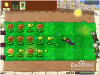 接下来一边种植向日葵,一边收集阳光种植豌豆射手,在每一行草坪上都要种植两个豌豆射手以上,往后僵尸会越来越多,豌豆射手种植的多了,才能抵挡僵尸入侵你的家庭。