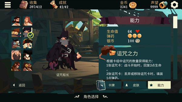 船长的玩法也是很多的,我们可以玩诅咒流,一直叠到我们的被动可以打出AOE的效果就可以了,很家说自己没有诅咒牌啊,那么我们可以在过关的时候给的奖励里面获取的,是可以入手的。