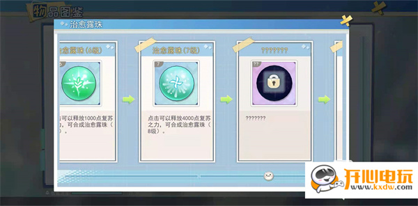 治愈露珠一般通过玩家完成任务,或者在方天匣中通过器灵采集回忆之泉获得,在地图上点击治愈露珠即可将其化为露水洒向不同需要解锁的土地上。游戏中的露珠分为不同的等级,基础是三个相同等级的露珠可以合成一个高一级的露珠,多个相同等级则会保留几个低等级的露珠仍在地图上供玩家释放。初次合成更高级治愈露珠时会解锁图鉴,游戏中最高等级为十级,合成玩法算是游戏中比较有意思的一个点。