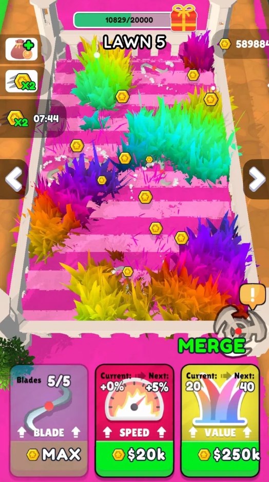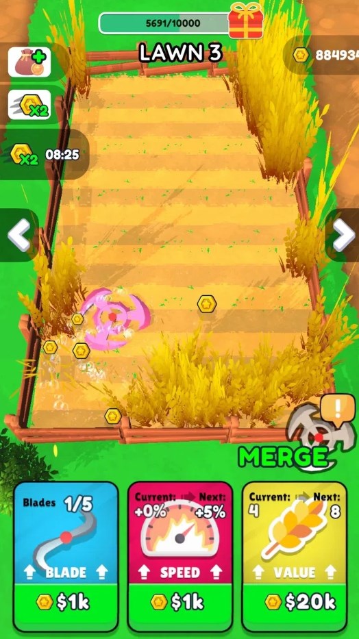 合并割草机是一款别具特色的割草游戏。在游戏里,玩家能够操控手中的刀片,去收割形形色色不同颜色的草。这些草各具独特之处,能为玩家带来美轮美奂的视觉感受。要完成更多的任务,就必须达成更多目标,这就要求玩家务必具备更为敏捷的反应能力。