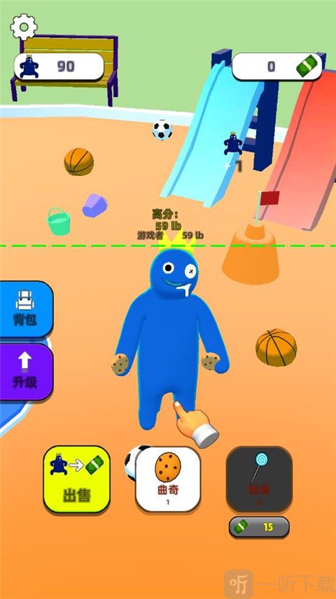 1、彩虹朋友的肚子宛如一个黑洞,任何物品都能被它吞下。你身为它的好朋友,快马加鞭开始给彩虹朋友投喂,努力把它喂成一个大胖子。