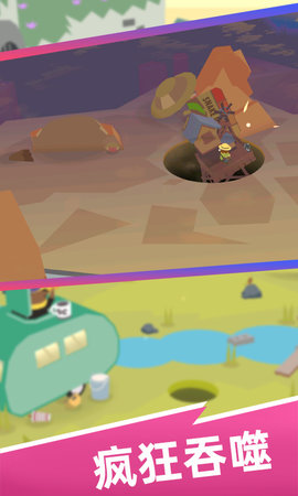 游戏过程特别好玩,玩家在进行吞噬操作时,得留意别被游戏角色察觉。玩家借助地洞能够吞噬所有物品,连角色的房子都不例外。但要注意,浣熊会悄悄占据地洞,摇身一变成为甜甜圈国王。游戏画面是卡通风格,十分可爱。玩家可用这款游戏打发无聊的时间,快来体验地洞的吞噬能力吧!