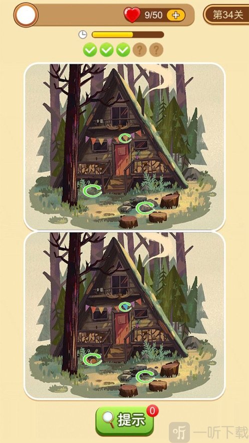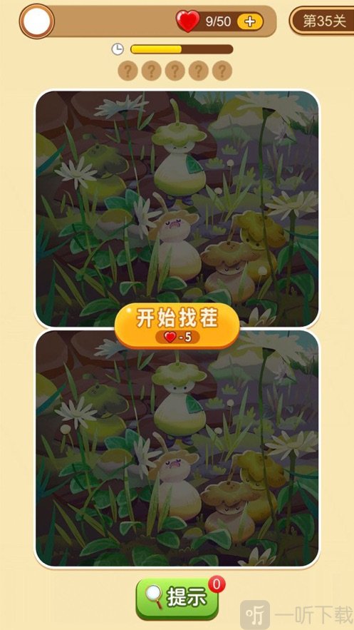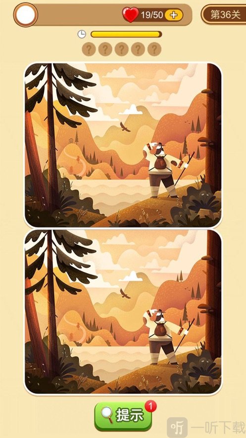 3.如果不明显,可以点击屏幕上的提示按钮,然后根据提示找出不同之处。