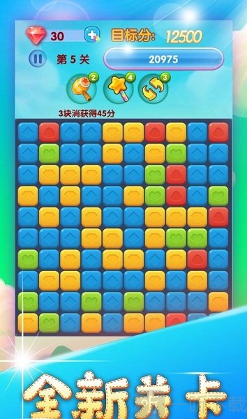 经典的三消游戏玩法模式在此得到完美延续,游戏整体操作难度不高,不过对玩家操作技巧有所考验。随着游戏关卡逐步提升,游戏内会涌现出诸多有趣道具,用以降低游戏难度,玩家可通过持续解锁获取这些道具。