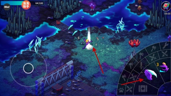 5、点击左下角的圆盘可以操控角色上下左右移动。