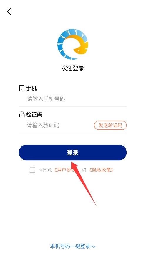 2、输入手机号码获取验证短信,填写验证码并勾选用户协议,点击登录完成身份验证。