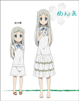 有一位少女,她皮肤白皙,周身散发着一种如梦似幻、缥缈空灵的气质,给人留下极为独特的印象。她的性格天真无邪、烂漫活泼,在6人之中,宛如带来幸运的吉祥物一般。可惜的是,她在幼年时便离开了人世。后来,不知出于何种缘由,为了达成自己的心愿,她出现在了仁太的面前。然而令人惋惜的是,她自己却已然忘却了那个愿望究竟是什么内容。