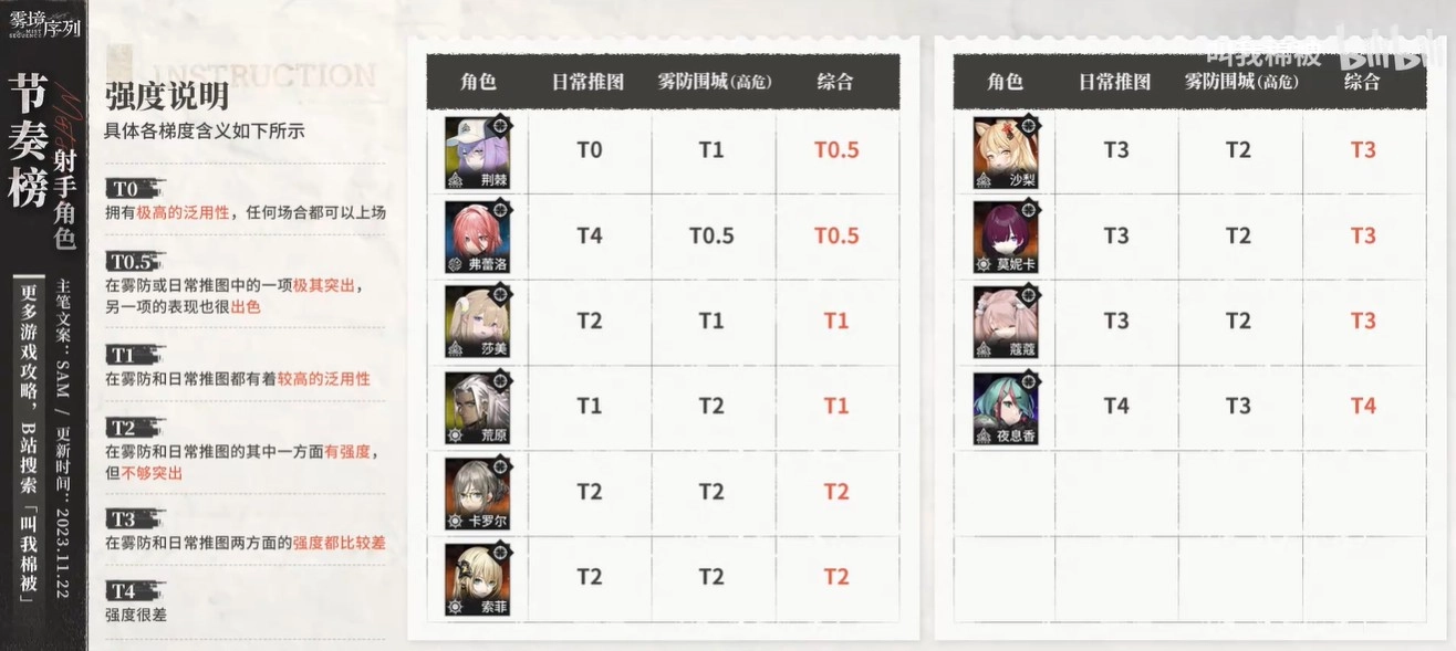 T2级别的角色在应对迷雾环境的防御场景或常规关卡推进这两个方向中的某一个具备一定实力,不过其表现尚未达到特别亮眼的程度。