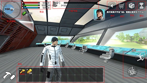 操作界面配备了直观易懂的引导说明,涵盖角色移动、场景地图导航、个人状态查询、道具物品管理以及排行榜查看等各项功能,让用户能够快速熟悉并使用。