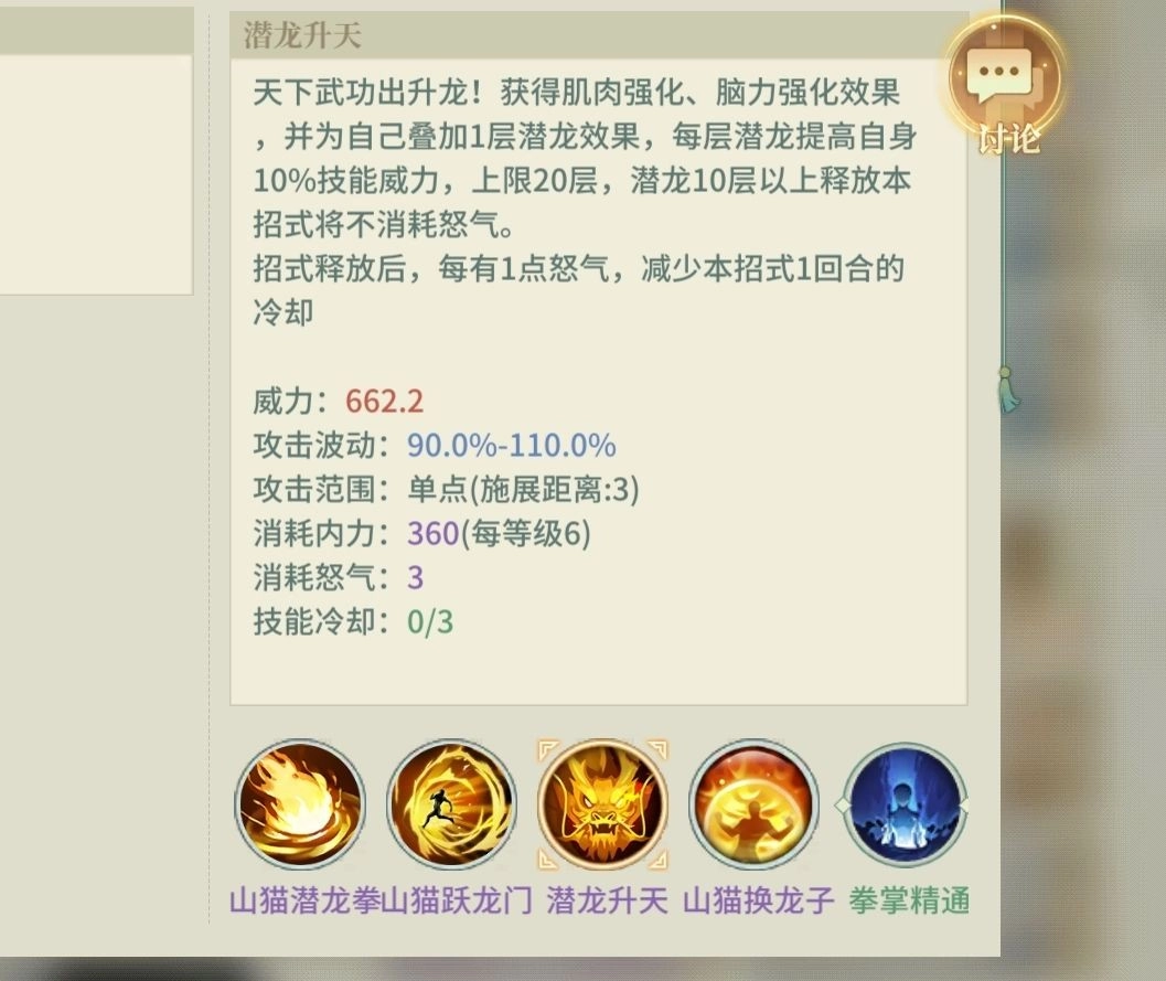 有这么一个流派,它属于南山门下,还有个别称带“潜龙”二字,练起来不需要太多资源就能玩得很顺手,就算操作上有点小失误也不容易翻车。现在大部分副本的环境都对拳法类流派比较友好,只有一个叫夜战洛阳的副本更适合用刀法,这就让这个带“潜龙”的流派优势更明显了。它有个叫潜龙升天的技能,用一次要3点怒气,刚好和无名剑意的被动效果很搭。等潜龙的效果叠到10层时,放这个3怒技能就不用消耗怒气了,还能稳定有30%的吸血、30%的破甲效果,技能威力也能到130%。再加上南山弟子本身随着战斗时间推移会越来越强的天赋,用起来真的感觉特别厉害。