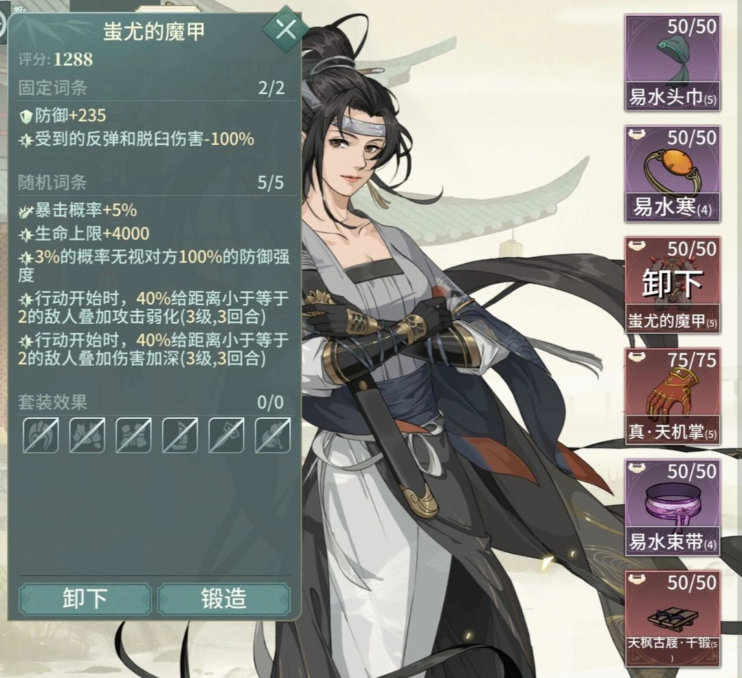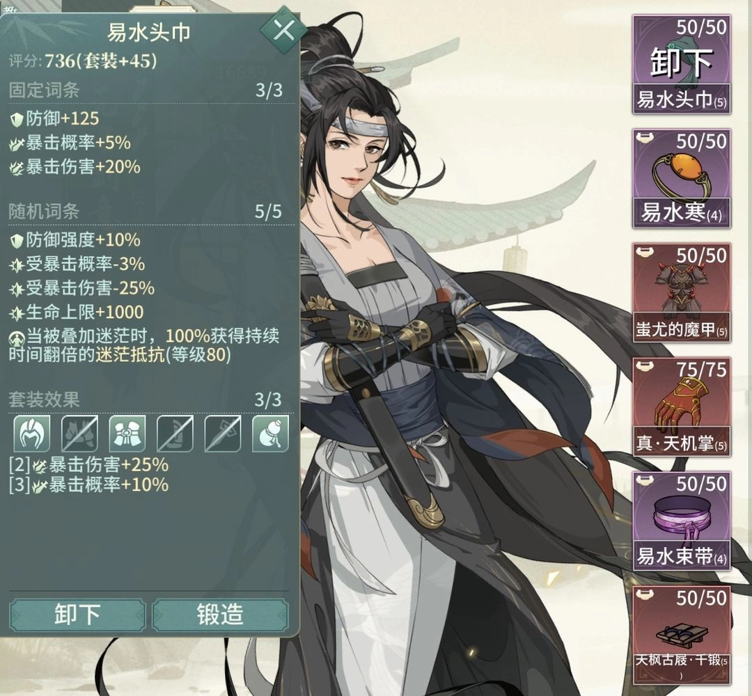 PVE玩家只要把这套装备洗好就能毕业啦。有个小细节要说明一下:易水寒和易水束带这两件装备我都洗了眩晕抗性,其实这个属性在PVE里用不上,但考虑到很多人打完PVE后还要打PVP,提前洗好眩晕抗性能省得之后再折腾;要是你只玩PVE的话,建议把眩晕抗性换成暴击率会更实用。