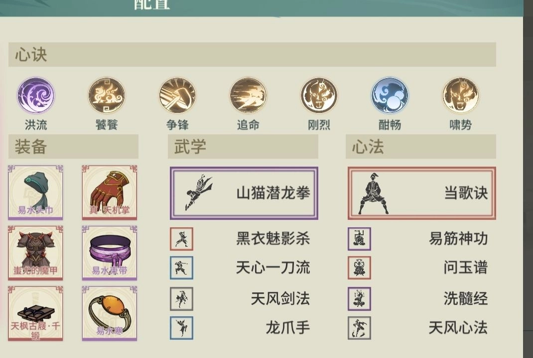 若选择跟随南山前行,无需抽取任何武学;针对PVE玩家,建议的武学搭配如下。