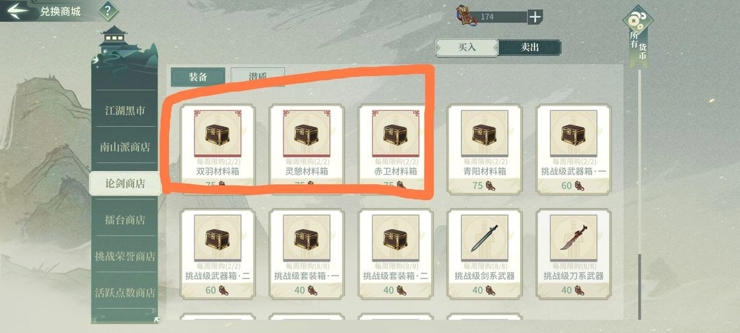 论剑商店:要是对玉真潜质没需求,就换那个圈出来的箱子,选你需要的兑换就行。