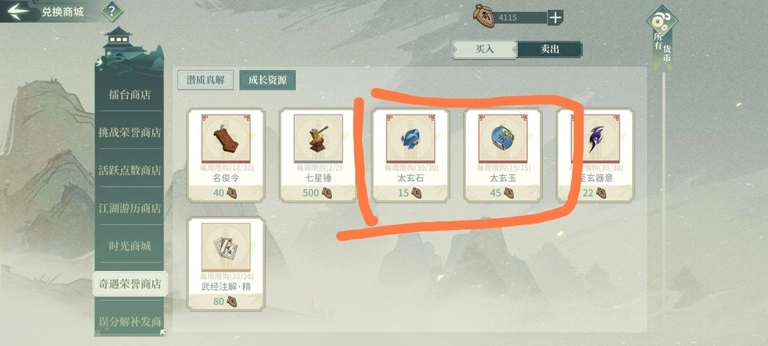 奇遇商店:全部换太玄玉,太玄石,多出来换精参。