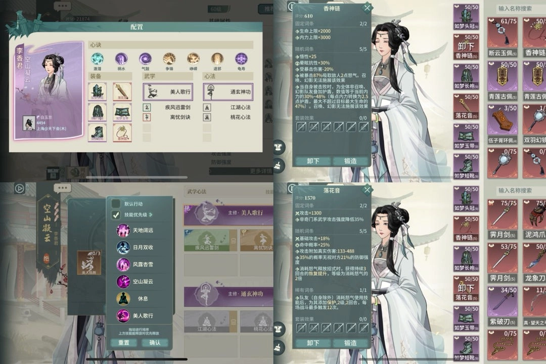 二、通玄辅助位(兼具回血回怒效果,开局体验丝滑流畅,适配各类阵容)李香君『空山凝云』
