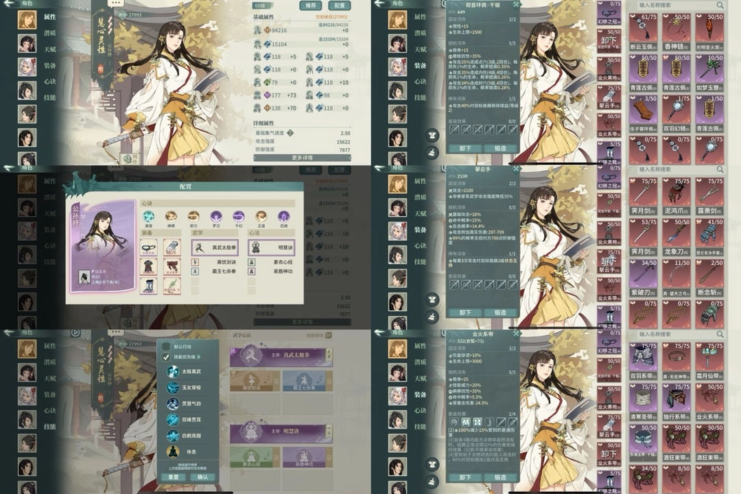 到这里,赤卫南拳的相关内容就暂告一段落了。目前重点在培养檀道济和巫锦,由于巫锦的电掣技能不需要2.5集气,所以可以考虑搭配大清寒通玄巫锦的组合——把薛涛换成小清寒。不过话说回来,巫玄神功这套配置难道就派不上用场了吗?其实李香君和张良主用巫玄神功也可行,这样还能多出一本重阳神功,给巫锦使用也没问题,具体如何安排就看各位自己的选择了。