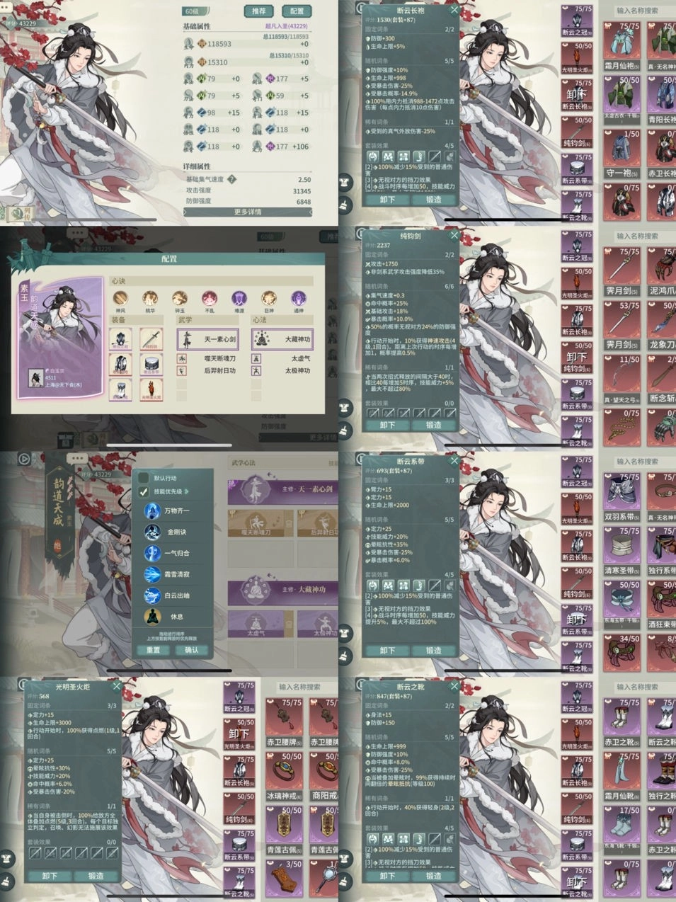 很多刚接触的朋友总忍不住调整配置,要么照搬别人的方案只学了皮毛,要么把不同思路的内容生硬拼凑,效果往往不尽如人意。为了避免这种情况,我只分享南山派最基础、所有玩家都能轻松凑齐的初始配置——除非你对玩法机制有了足够深入的理解,否则建议完全按照这套来,不要做任何改动。其他门派的配置暂时不公开,也是担心新手朋友盲目调整出错,感兴趣的话可以在Tap搜索“干不了谢谢”加入交流群获取。
