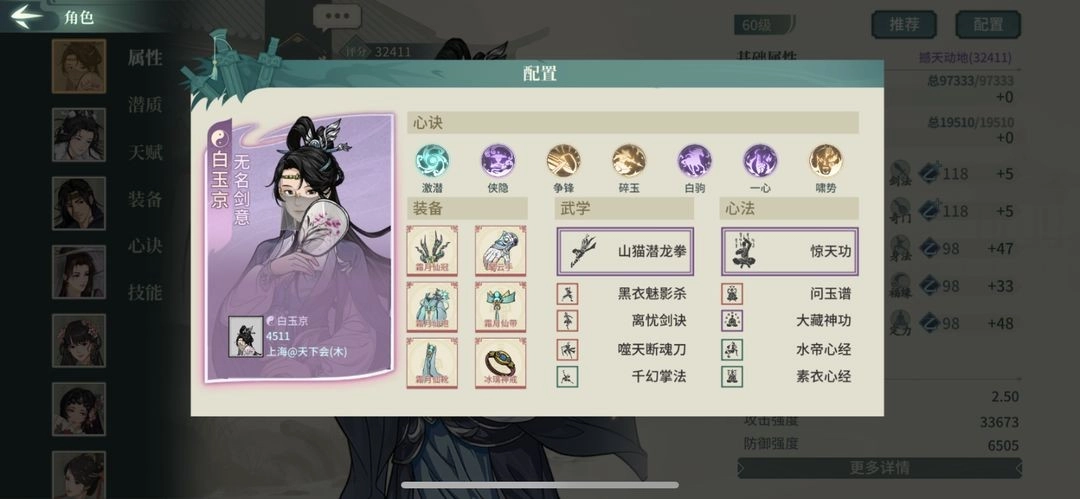 我用一个资源配置相当有限的账号稳定通过了这一关卡——角色是56级仅突破一次的南拳流派,《当歌》武学完全没投入参研点数,潜能也没进行任何提升,心决系统还差两项没点满,臂力属性更是只有20到21这样的偏低数值。