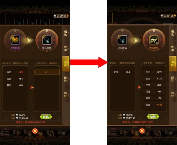 装备自带的额外属性,可以通过熔炼功能来更换。这里分享个实用技巧:假设你有件常用装备A,另一件装备B有你想要的极品属性,别直接拿B和A熔炼。可以先找件白色装备C,用熔炼把B的极品属性转移到C上(如果C能成功继承这个属性),再用C和A熔炼,这样A就能稳定获得那件极品属性了。