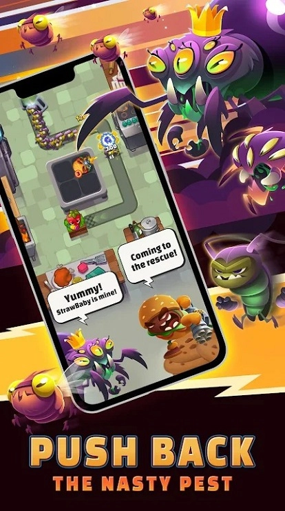 食物大战塔防》是一款别具一格的塔防游戏,玩家需要收集食物资源,升级防御塔,搭建稳固防线抵御敌人侵袭。游戏中还能解锁全新的食物主题防御塔与特殊技能,为战斗增添更多趣味。合理规划战略布局、高效利用粮食资源,是取得胜利的核心要素。通过持续挑战更高难度关卡,玩家可以逐步提升自身的游戏技巧与策略思维。以丰富的美食元素为主题,让你在游玩过程中充分感受美食带来的欢乐体验。