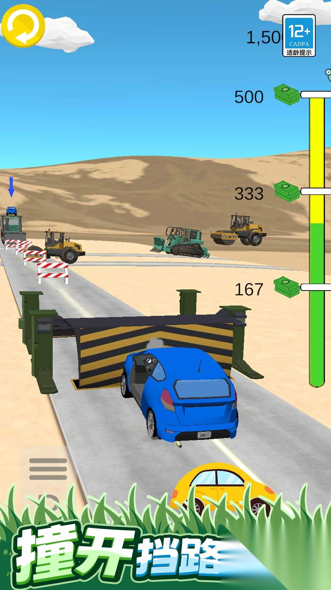 3、玩家要时刻保持警惕,通过及时松开刹车、调整行驶方向的方式来躲避障碍,稍有疏忽就可能发生碰撞,进而导致游戏失败。
