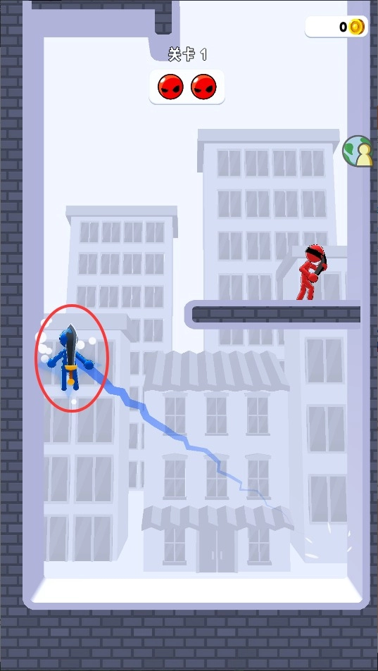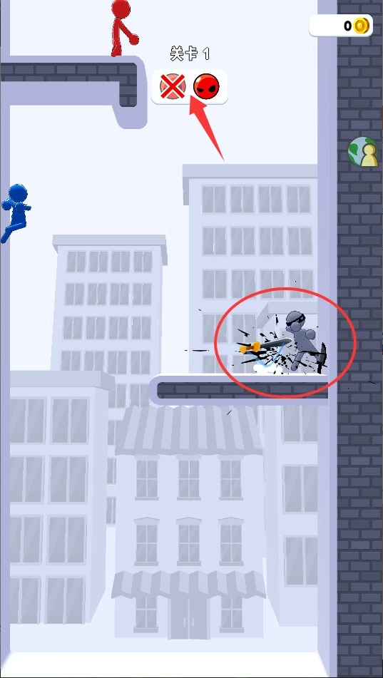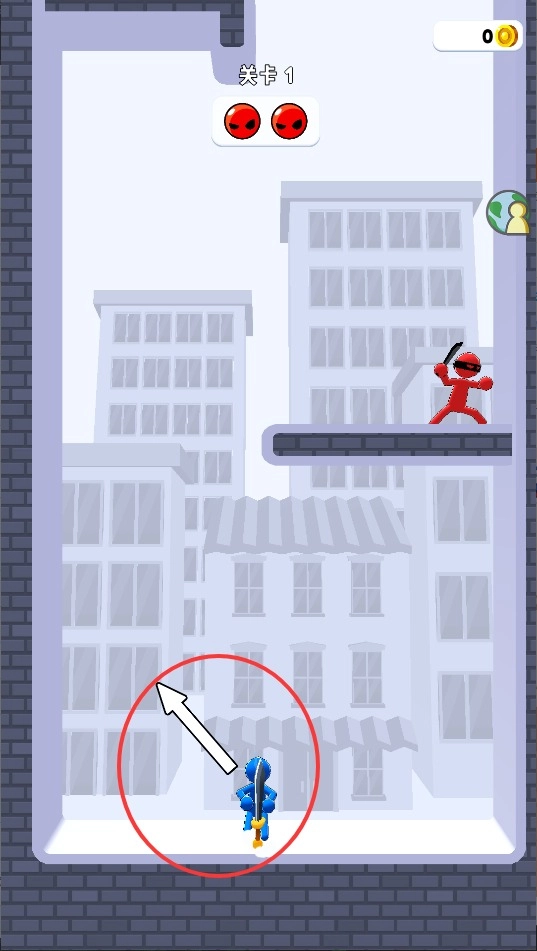 1、通过手指滑动屏幕操控火柴人移动,灵活走位躲避敌人攻击并寻找最佳进攻位置。