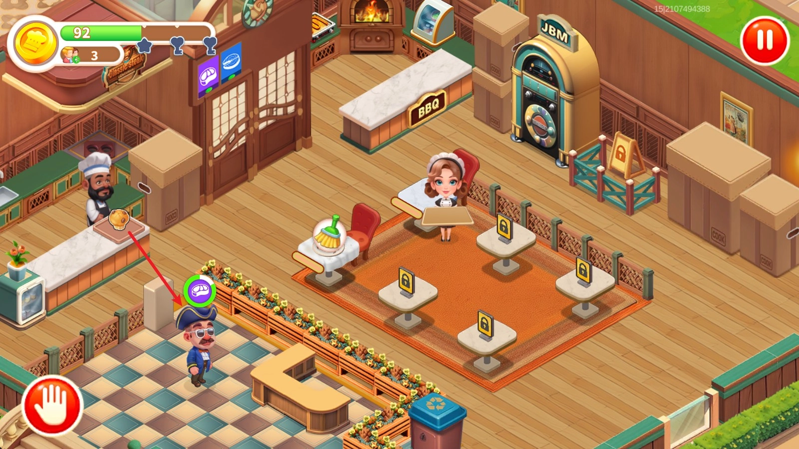 2、接着点击旁边的厨师帽,这样就会有对应的厨师为其上菜了。