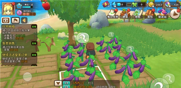 2、在海岛上,玩家可以开垦土地、收获资源、建造建筑、布置自己的小屋,挖宝藏等;