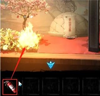 1、点击右下角座椅脸谱得到消防栓的密码提示7153,打开得到灭火器。