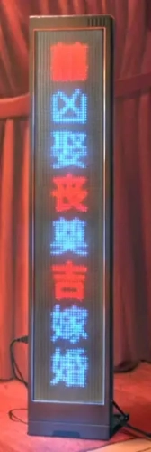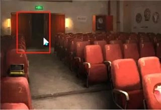 7、打开电源后,返回舞台,此时舞台上的电子屏幕就会亮了,根据红字和排序的提示得知密码为:喜奠丧婚吉嫁,打开观众席上左边的盒子,打开得到化妆笔。