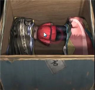 10、拉开中间布帘,可以看到乐器,拿起小棒子,按照报纸上的提示按顺序敲击即可。成功后,衣箱打开,得到布偶。
