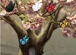 2、回到舞台区,灭火器灭火,灭火后,得到油伞和蝴蝶。