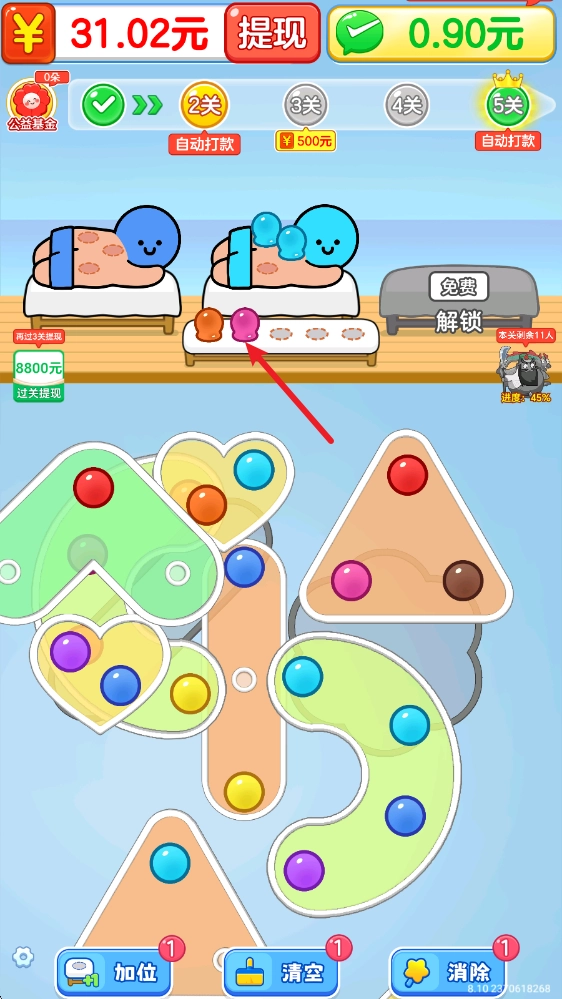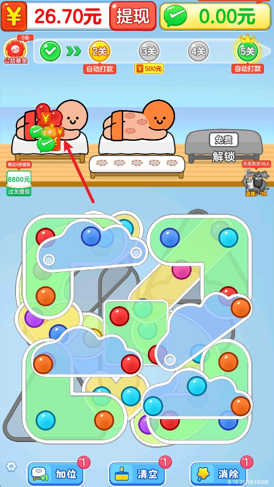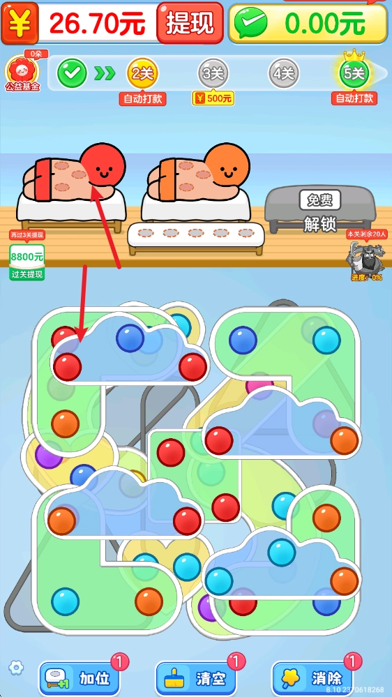 拔个火罐罐赚钱游戏是一款趣味十足的消除闯关类休闲益智游戏。在游戏里,我们将经营一家疗养馆,馆内每天都有源源不断的客人前来拔火罐以去除湿气。我们需要依据客人身上的颜色,使用对应的火罐为他们治疗,当所有客人都得到治疗后即可通关。每通过一关都有机会获得奖励,游戏中的关卡数量众多,快来挑战吧。