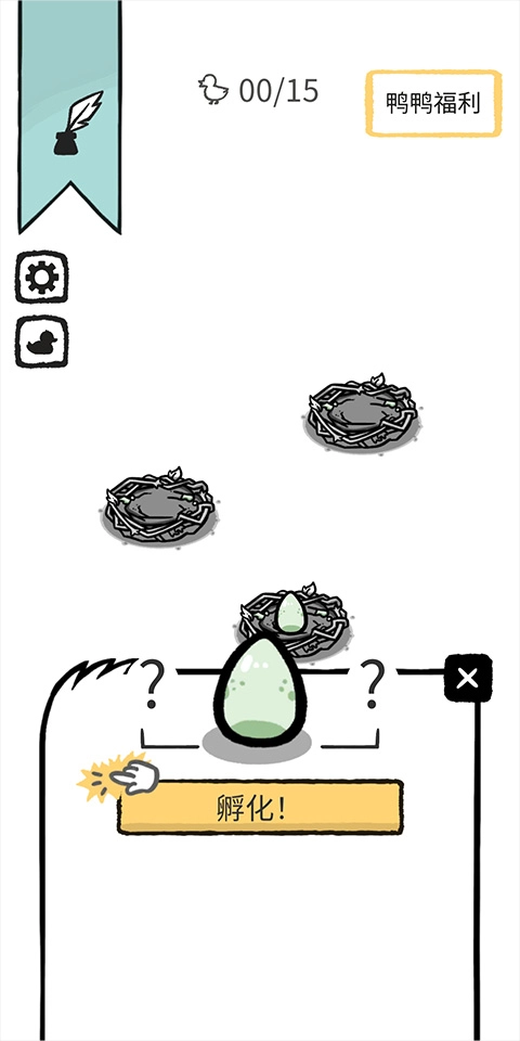 开局就是三个孵化鸟巢,其中有一个鸟巢有一个鸭蛋,玩家们点击这个鸭蛋