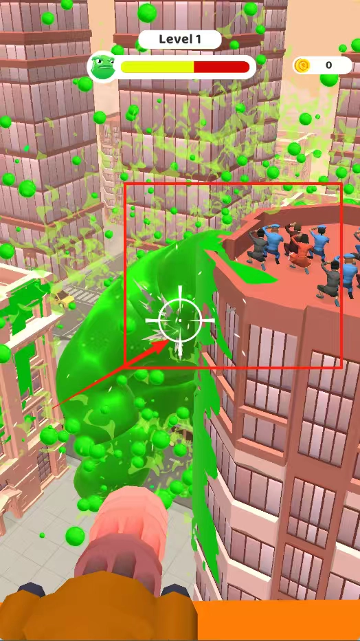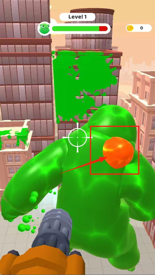 屏幕上会出现一个白色十字瞄准镜,你需要用它对准绿色怪物身上带有红色标记的部位,接着点击屏幕进行射击。瞄准的时候一定要精准,只有这样才能实现一击必杀。