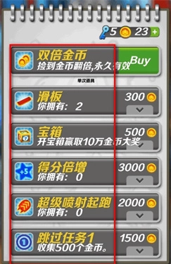 2、购买得分倍增道具:在商城消耗3000金币购买“得分倍增”道具,可在短时间内提升得分倍数。
