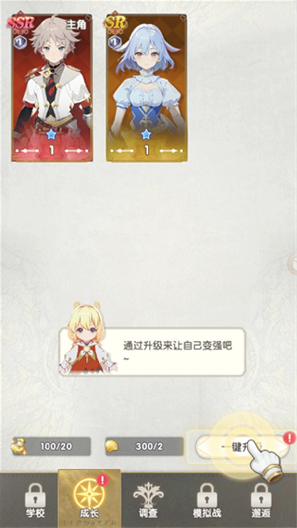 3、一键升级的成长模块,让角色快速变强。