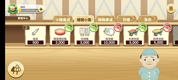 5、除了小猪进货,还有猪猪小屋,给猪舍配备设备,过得更舒适;