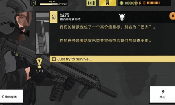 1、城市的任务要求是活捉巴杰并将他带给侦查小组,在地狱模式中,玩家只需要存活下来就行了。