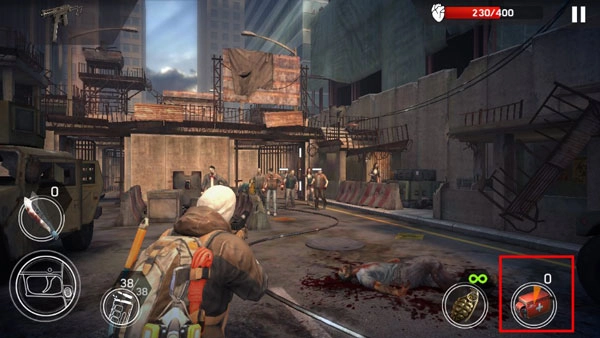 3、遇到丧尸群还可以使用手雷干掉一大群敌人
