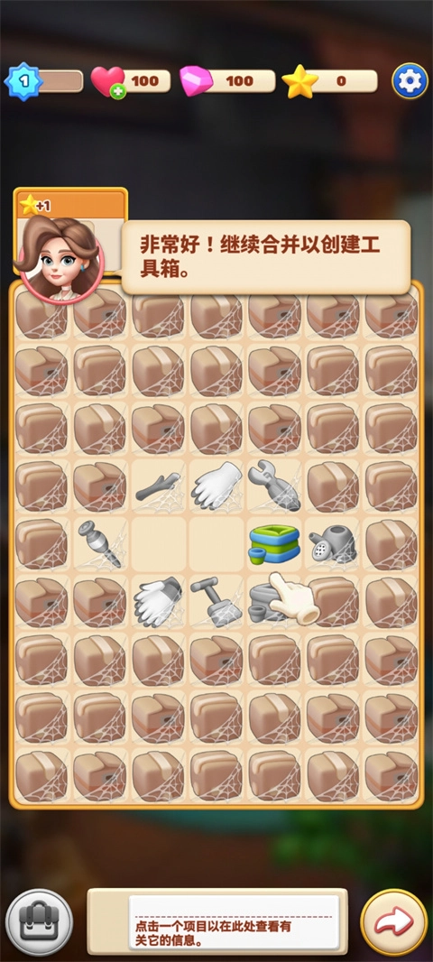 在拼图游戏板上把两个相同的元素合并起来,就能创造出新的物品与工具,用这些来翻新客厅、卧室、厨房、花园以及温室之类的各类房间。