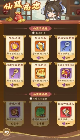 3、仙盟中每天会迎来云游商人,带来多种商品。所有成员可共同参与砍价,砍价次数越多,价格越低。大家团结合作,甚至可能将商品价格降到负数,从而获得额外的仙玉,别忘了邀请好友一同参与哦~