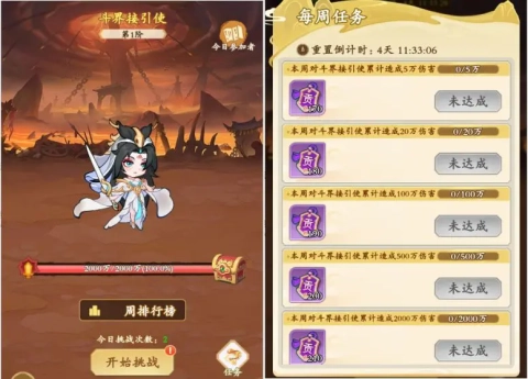 4、仙盟每日会开放挑战任务,完成后根据造成的伤害领取贡献奖励。